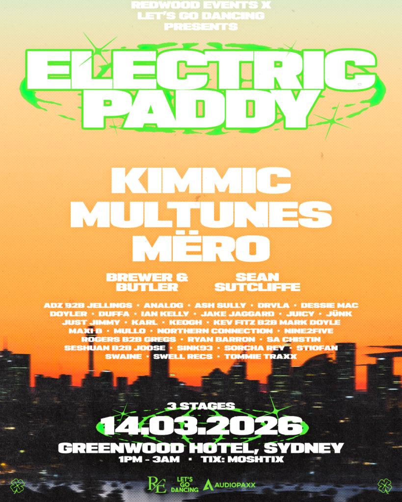Electric Paddy takes over Greenwood Hotel, North Sydney this Saturday 14 March 2026 for a massive all-day electronic music celebration.