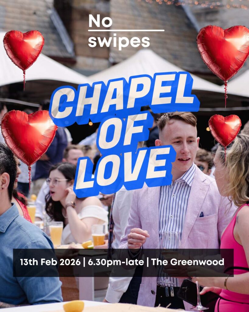 No Swipes is back this Valentines at The Greenwood with ‘The Chapel of Love’ on Friday 13th February (lucky for some).